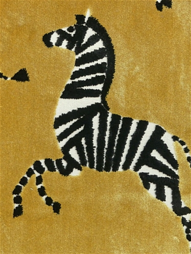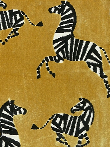 Finesse Saffron is playful, lush golden, dancing zebra cut velvet with a thick pile and high durability. Embrace your inner spirit with frolicking black and white zebras' on high-end decorator fabric with a soft hand. Make a statement and imagine the possibilities with this bold upholstery for decorative pillows, throw pillows, coverlets, bench seats, daybeds, cushions, or your favorite armchair and club chair.