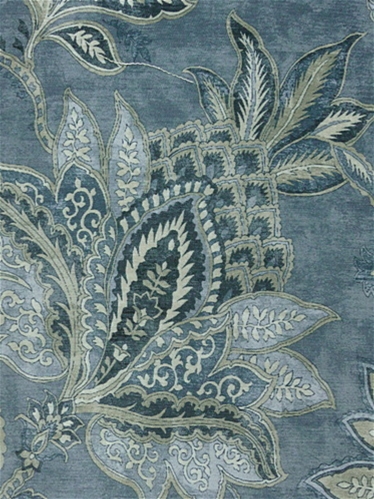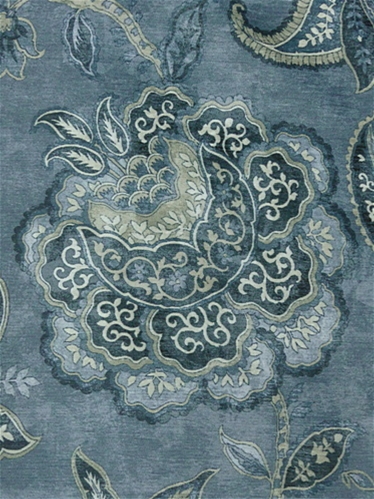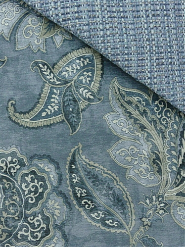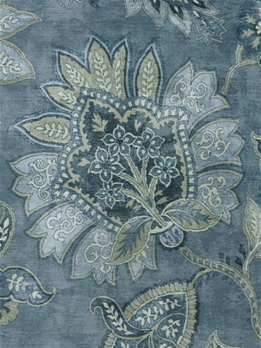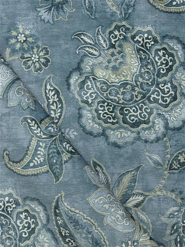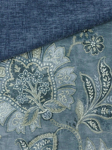 Fornax 58 Harbor by Covington Fabric isn’t your run-of-the-mill fabric—it’s the velvet-soft superhero of the textile world. Imagine a chic, velvety hand that invites you to snuggle up, but don’t let that fool you into thinking it’s delicate. This printed chenille is tough as nails, with a Jacobean floral pattern so bold it practically shouts sophistication. The color palette is like a painter's dream: navy, taupe, white and light blue swirled together on a marbled soft blue backdrop. It’s the kind of fabric that makes your couch feel like a throne, and your throw pillows feel like you’ve discovered the secret to eternal elegance.