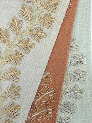 When it comes to use, this trim is wonderfully adaptable and ready to elevate your creative projects. Use this decorator trim by the yard to enhance plush pillows that beckon guests to linger longer or to outline draperies that sway like they’re walking a runway. The embroidered vining leaves bring texture, movement, and a touch of botanical allure to everything from table runners to upholstered ottomans. Want a lampshade that feels custom‑couture? Add Atalaya Mist. Craving seasonal flair with everyday comfort? This trim whispers sophistication with a wink — the stylish sidekick every textile deserves.