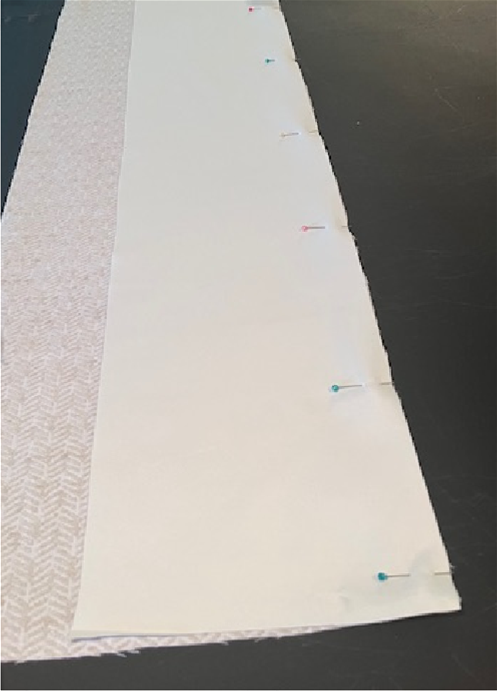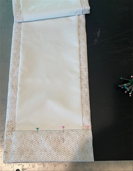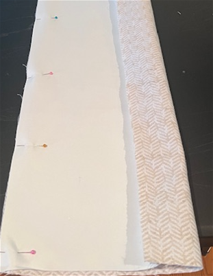 Next, pull the lining over so that it matches up with the other edge and pin it along the second side.