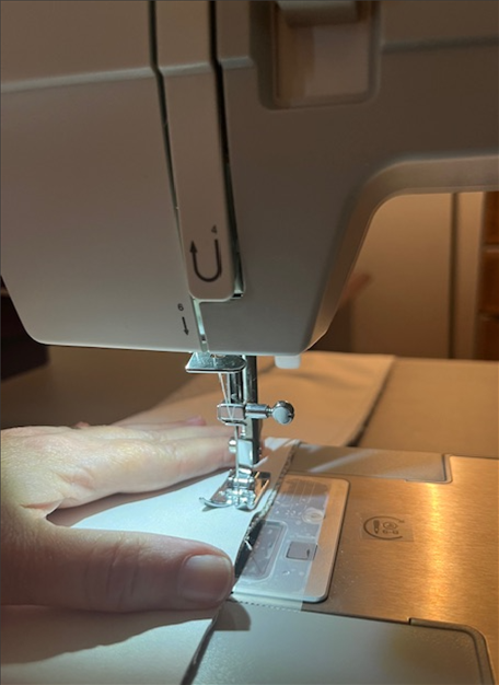 Sew along the bottom edge. Now you have a type of "pillow case" with 3 edges sewn shut.