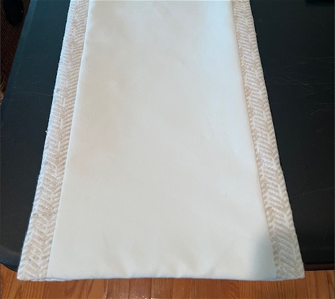 Next, I tucked the decorator fabric and drapery lining fabric in towards each other 1" below the top edge (that edge should be the only open edge of the "pillow case") to create a finished edge. I pinned the loop side of the Velcro© straight across the top edge on the drapery lining side of the Roman Shade. Next, I sewed the Velcro© down along both long edges of the Velcro©.