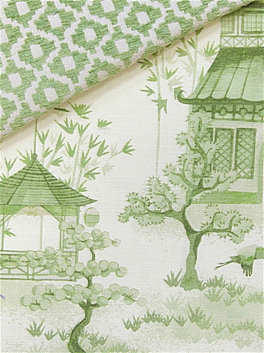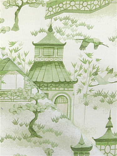 Kinjo 206 Greenery by Covington Fabric is a 100% cotton print fabric whose softness and breathability will make you wonder why you didn’t get around to upgrading your décor sooner. With its chinoiserie design of stately pagodas, graceful herons, and lush green trees, you will feel like you’ve stepped into a serene, elegant garden... without leaving your couch. Whether you're a fan of traditional patterns or just want to bring a little natural beauty to your home, this fabric delivers a soft, sophisticated look that’s still totally approachable.