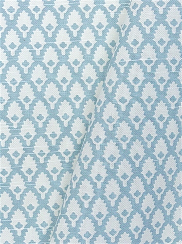 Calais Spa Cotton by Lacefield Designs is a Danish Linen, small scale Designer Fabric. Calais Spa is a spa blue floulard block print on a white background. Calais Spa is the ideal fabric for drapery or upholstery projects. Lacefield Fabrics are designed and printed in the USA.