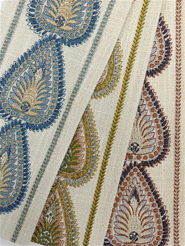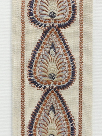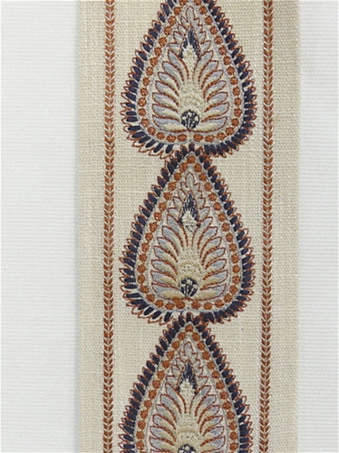 Fort-Alezas Del Monte Europatex Trim makes a bold first impression with its embroidered leaves in navy blue, taupe and burnt orange dancing across a warm beige background — a snippet of autumn splendor you can sew into your décor. Part of the spirited Fort-Alezas Trim Collection, Del Monte Berry comes in three color ways available to suit every creative whim. It’s like bringing the forest’s best hues indoors, only without the pinecones underfoot!