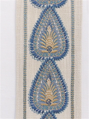 Fort-Alezas Del Monte Ink Europatex Trim makes a bold first impression with its embroidered leaves in tonal blue, honey and taupe dancing across a warm beige background — a snippet of autumn splendor you can sew into your décor. Part of the spirited Fort-Alezas Trim Collection, Del Monte Ink comes in three color ways available to suit every creative whim. It’s like bringing the forest’s best hues indoors, only without the pinecones underfoot!