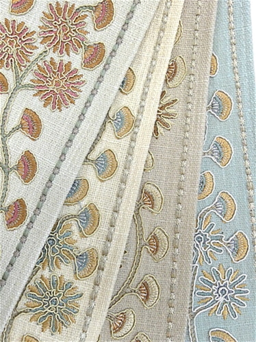 This versatile trim isn’t shy about showing off! Use it as a decorator trim by the yard to add depth and character to pillows that say “come sit awhile,” or to draperies that want to be the life of the room. Let it edge a throw blanket or enhance an accent chair — because why should grand gestures have all the fun? Its abstract leaf embroidery makes it a standout choice for embracing nature-inspired style without being too literal. Bring a dash of autumnal flair to upholstered headboards, lampshades, or even a playful table runner — creativity has no rules when Malmasin Tempest is in your toolkit.