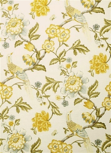 01832 Lemon Zest - Vibrant yellow and deep green color. Vine of life with bird fabric. Perfect for upholstery fabric, drapery fabric, headboards, bedspreads or pillow covers.
