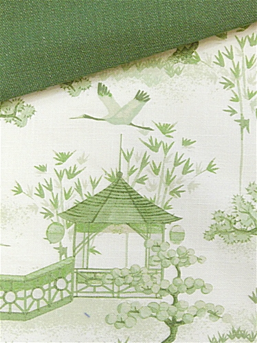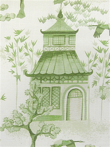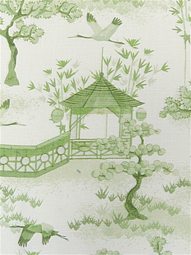 Kinjo 206 Greenery by Covington Fabric is a 100% cotton print fabric whose softness and breathability will make you wonder why you didn’t get around to upgrading your décor sooner. With its chinoiserie design of stately pagodas, graceful herons, and lush green trees, you will feel like you’ve stepped into a serene, elegant garden... without leaving your couch. Whether you're a fan of traditional patterns or just want to bring a little natural beauty to your home, this fabric delivers a soft, sophisticated look that’s still totally approachable.