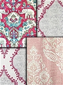 Medallion fabric patterns by the yard from Housefabric.com for professional home decorating. Colorful foulard fabric, tile print fabric for drapery fabric or upholstery fabric. Discount fabric outlet prices.