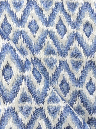 Morrowick Lapis petite flame stitch pattern in indigo by Valdese Weavers. Create eye-catching dining room chairs, accent chairs, and throw pillows with this bold, zig zag, decorator fabric. Valdese Weavers founded in 1915 by Waldensian settlers from Northern Italy has a deep-rooted heritage in textiles. Innovation and growth have allowed the company success and leadership in the textile industry. Valdese distinctive brands allow the design team to provide customers with a broad range of decorative and durable fabrics to fit all budgets. The Valdese brands consist of Sustain Performance Brands, Inside Out Performance Brands, Ease Eco Performance, Circa 1801, and Valdese Weavers Contract. Valdese has a global presence, expansive plants that operate using highly technical computer systems, and progressive manufacturing processes that develop textiles with durability, meeting strict timelines, and high quantities. The Valdese facilities are in the United States and each plant boasts of energy-efficient systems and practices sustainability. Ease Eco Performance Fabrics and InsideOut use recycled ocean plastic in their performance fabrics and an equivalent of 50 million water bottles were woven into fabric in 2022. Other certifications include Red List Free, Seaqual Initiative, Greenguard Gold, PFAS free, Ocean Stewardship, OEKO-Tex Certified, and Sustain Furnishings Council Member.