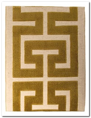 Lustrous gold velvet Greek Key jacquard pattern on natural heather back ground. Use 7" wide Skyrise Topaz velvet trim tape to add a decorator finishing touch for window treatments, pillows, bedding or furniture.