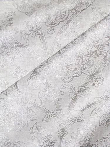 Silver Paisley medallion jacquard fabric for drapery, upholstery, party tables or bedding. Exclusive decorator fabric from Covington Mills.